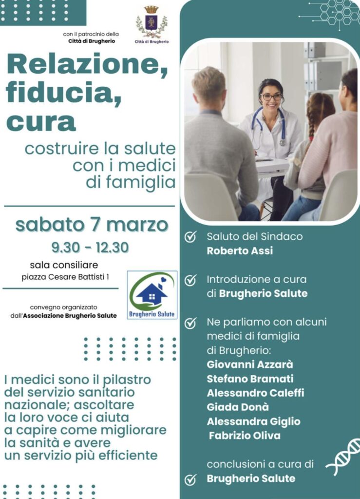 Sabato 7 marzo, nella Sala Consiliare del Comune di Brugherio si terrà un convegno promosso dall’Associazione Brugherio Salute con l’obiettivo di rafforzare il dialogo e la fiducia tra medici di famiglia e cittadini.